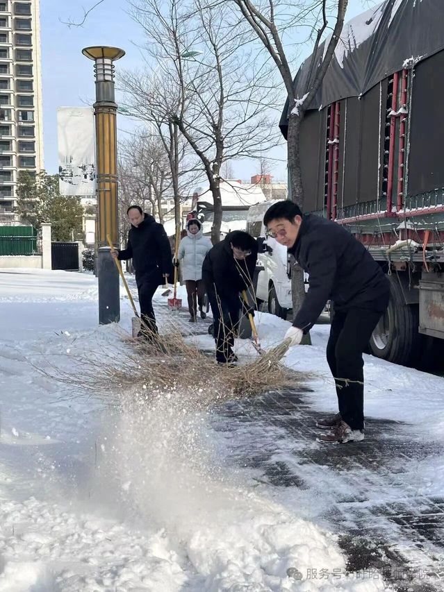 全院上下不畏严寒、协同作战,高效完成校内外除雪去冰任务,彻底消除了路面结冰打滑隐患,切实保障了师生出行与周边群众通行安全。