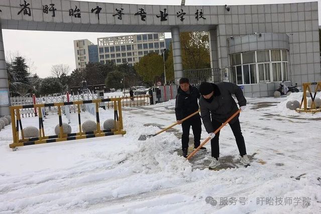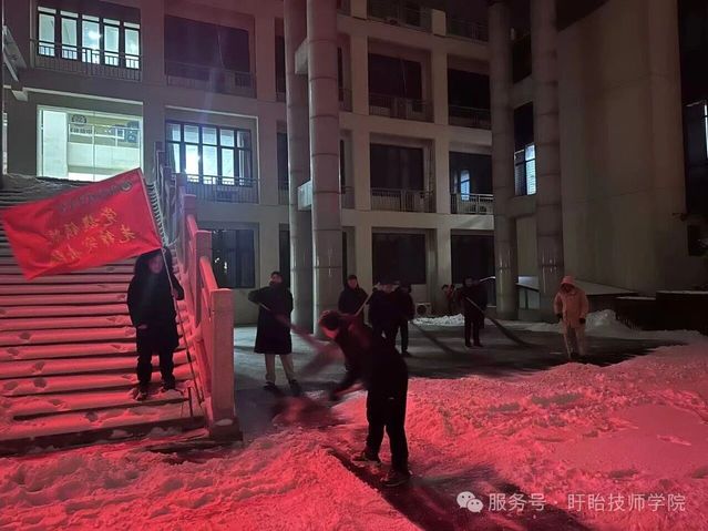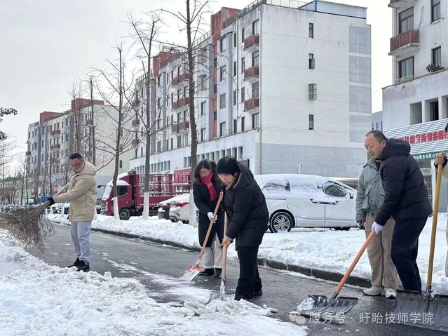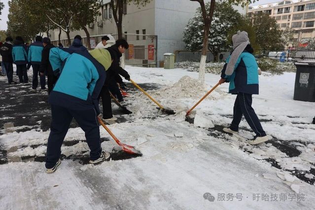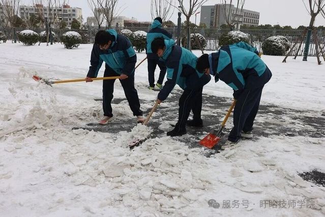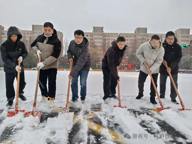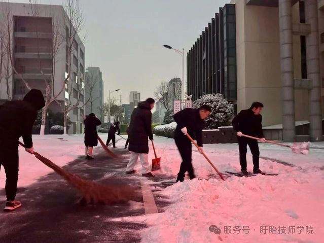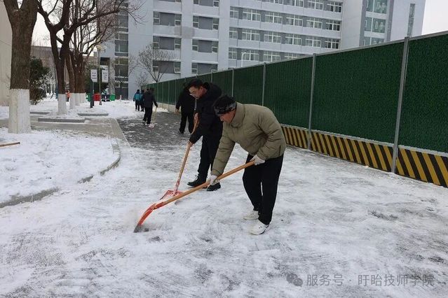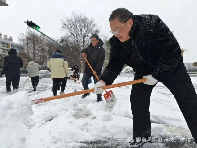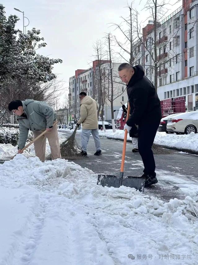 与此同时,校内师生积极响应,铁锹、扫帚等工具齐上阵,分工协作铲雪破冰,对主干道、教学楼及宿舍区通道等关键区域全面清理。
