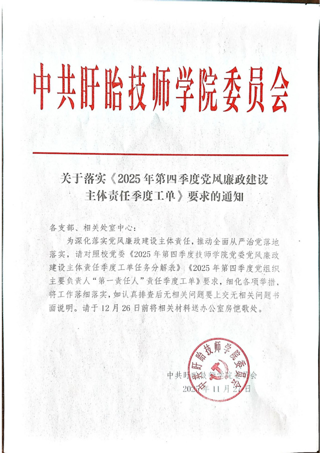 2025年第四季度党风廉政建设主体责任季度工单